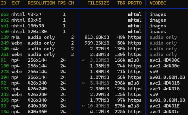 @echo off cd /d %~dp0 set OPTIONS= set /p URL=URL: yt-dlp.exe -F "%URL%" set /p ID=ID: yt-dlp.exe %OPTIONS% -f %ID% "%URL%"